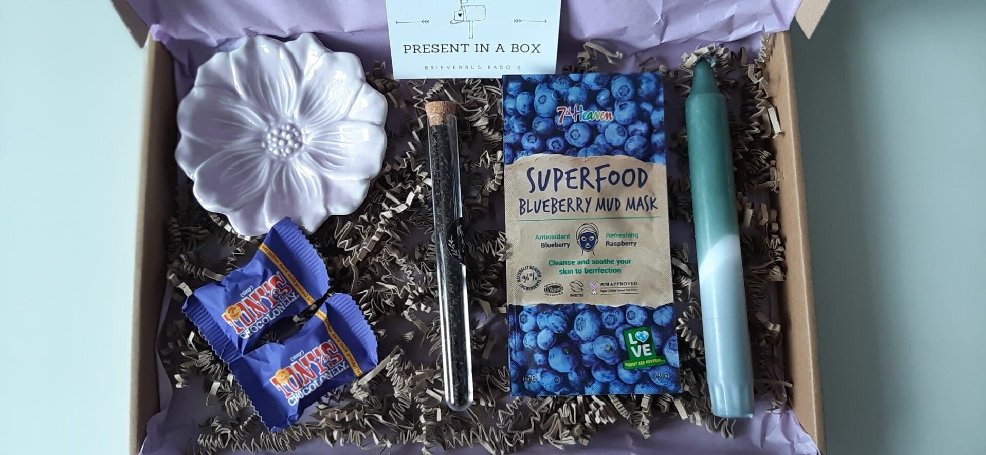 Even een momentje voor de jarige, zwanger, jezelf of gewoon iemand even verrassen met de sfeerbox lila.
